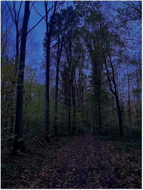 Un vent froid, un sentiment de solitude qui s’intensifie et la décision de rebrousser chemin s’impose. Description d’une promenade à pied dans une forêt d’automne presque silencieuse un dimanche après-midi.